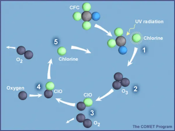 这直接链式反应了,要是完全理想情况,那理论上一个氟利昂分子,就能把整个臭氧层给灭了。