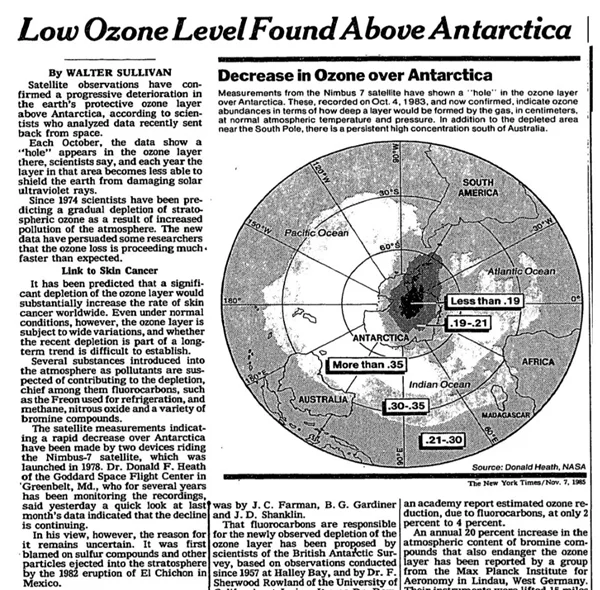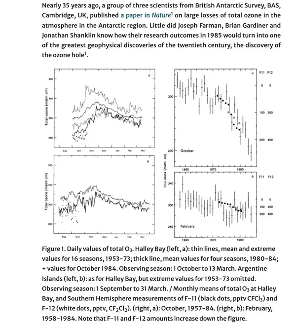 虽然NASA内部在1984年也有吹哨人发现了这个事,但直到1985年英国人的论文发表出来,再加上NASA恢复出的异常数据,以及和日本欧洲的卫星数据对完账,大家才真正意识到:妈耶,天塌了,塌十年了。
