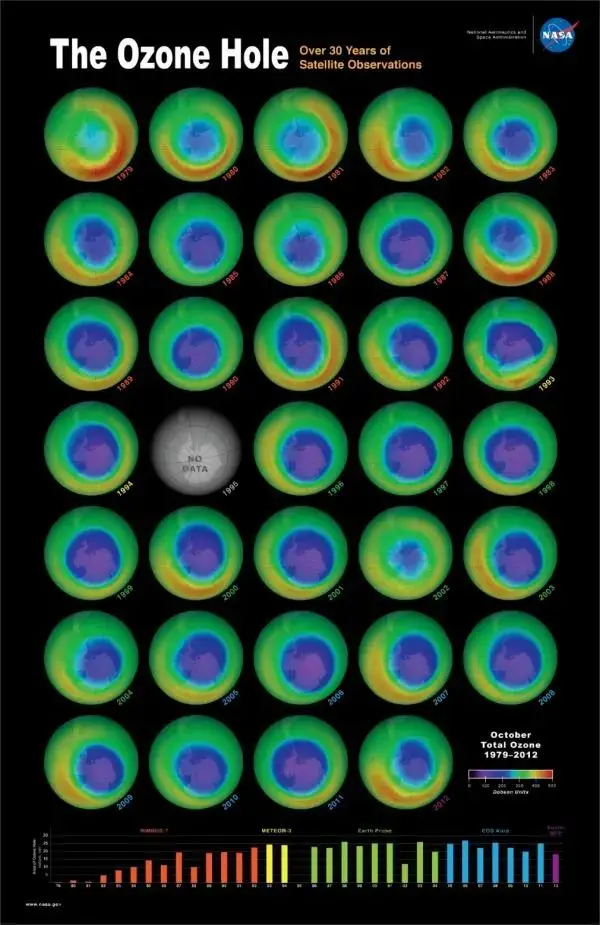 这报告一发,NASA也赶紧调自家的卫星数据来看,结果也呆住了。他们发现,南极上空真的有一个巨大的臭氧层空洞,面积比整个美国国土还大!