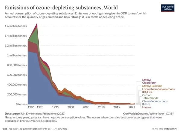 当然了,治病如抽丝。因为氟利昂的寿命太长,虽然人类从90年代开始减排,但臭氧层真正开始恢复还是要晚一些时间。