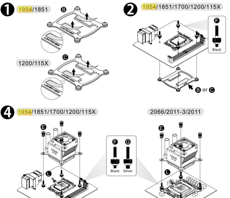 据 Thermaltake 泄露的产品安装指南证实,英特尔即将发布的 Core Ultra 400 系列“Nova Lake-S”处理器所用桌面插槽 LGA1954,将继续保持对当前 LGA1851 及之前 LGA1700 散热器的兼容性。