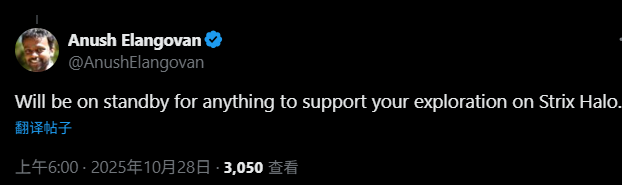 AMD负责AI软件的副总裁Anush Elangovan也是看热闹不嫌事儿大,公开称随时准备为卡马克提供任何支持,帮助其了解Strix Halo。