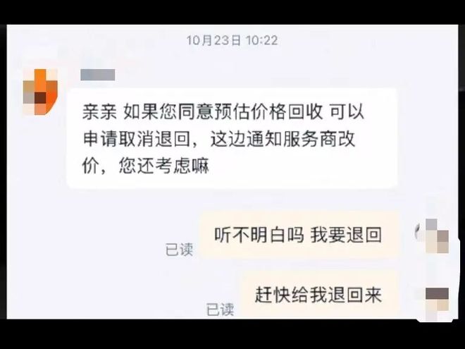 然而,自从申请放弃回收后次日起,博主称就开始多次接到电商平台专员电话。对方开始“讨价还价”,回收价从3200元一路涨至3600元。博主均不接受,并且更不认同平台同消费者讨价还价的逻辑,坚决要求放弃回收。