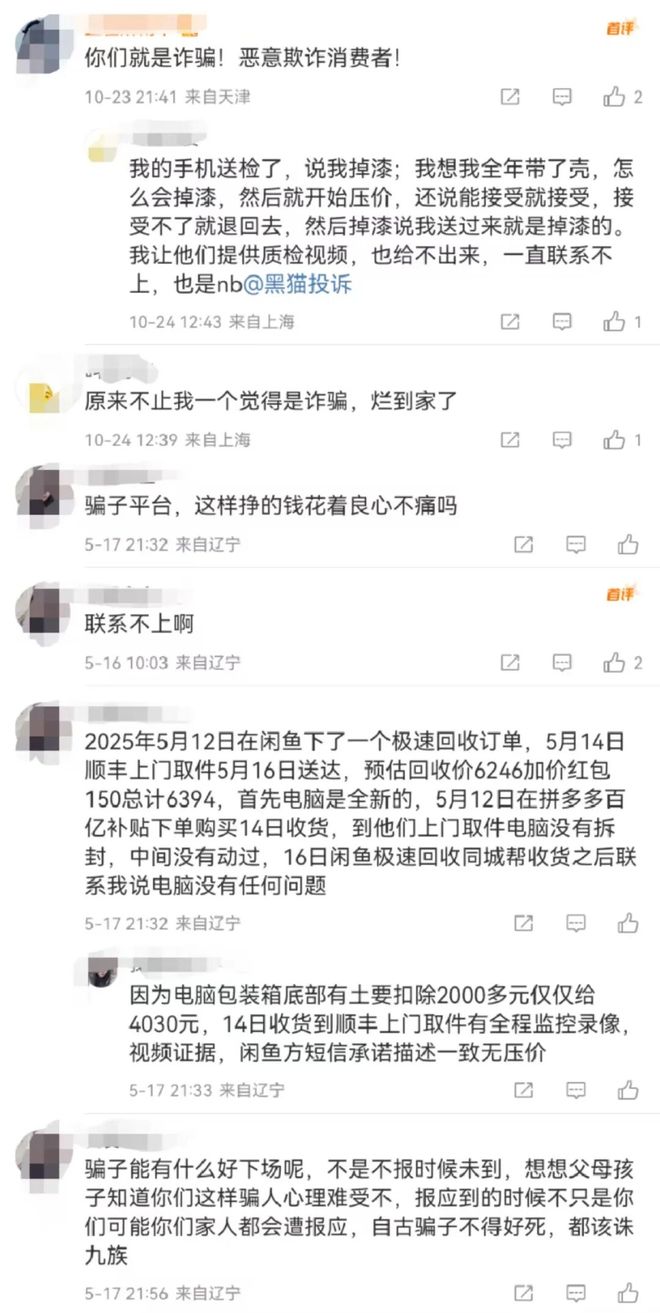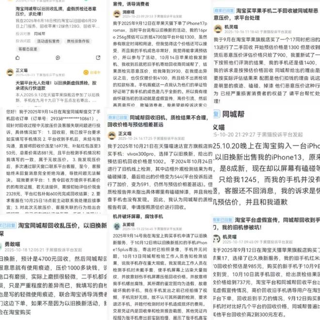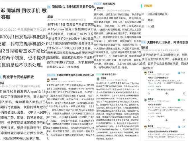 很多网友吐槽称,在电商平台上使用同城帮的以旧换新服务,然后均遭到恶意压价。
