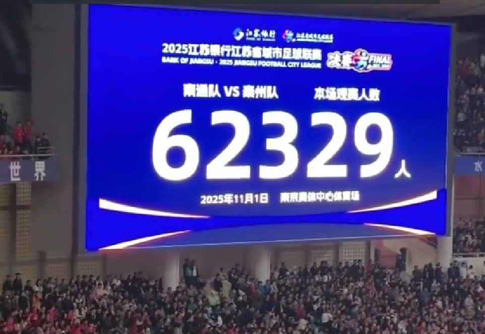 昨晚2025“苏超”总决赛正式结束,泰州在点球大战中4:3战胜南通,夺得首届“苏超”冠军。值得注意的是,南京奥体中心的观赛大屏显示,本场观赛人数达到62329人,再次刷新我国业余足球赛上座纪录。