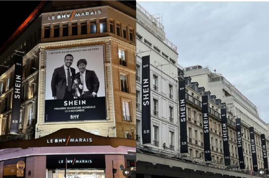 面对质疑,SGM百货公司董事长兼 BHV 负责人 Frederic Merlin,则坚定地和Shein站在一起。甚至在开业前夕,在BHV外墙上挂上了他和Shein集团执行主席唐伟的巨幅海报。