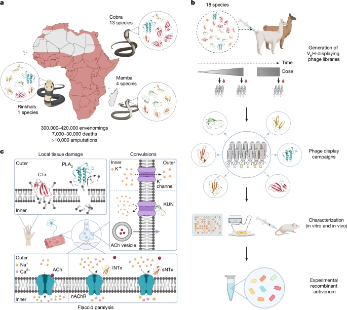 毒蛇咬伤是撒哈拉以南非洲的一个重大卫生问题,每年导致数千例死亡和重伤。当前的抗蛇毒血清由动物血浆制成,不仅昂贵、效果不稳定,有时还会导致不良反应。这些血清也无法针对所有医学相关蛇种或是预防严重组织损伤。