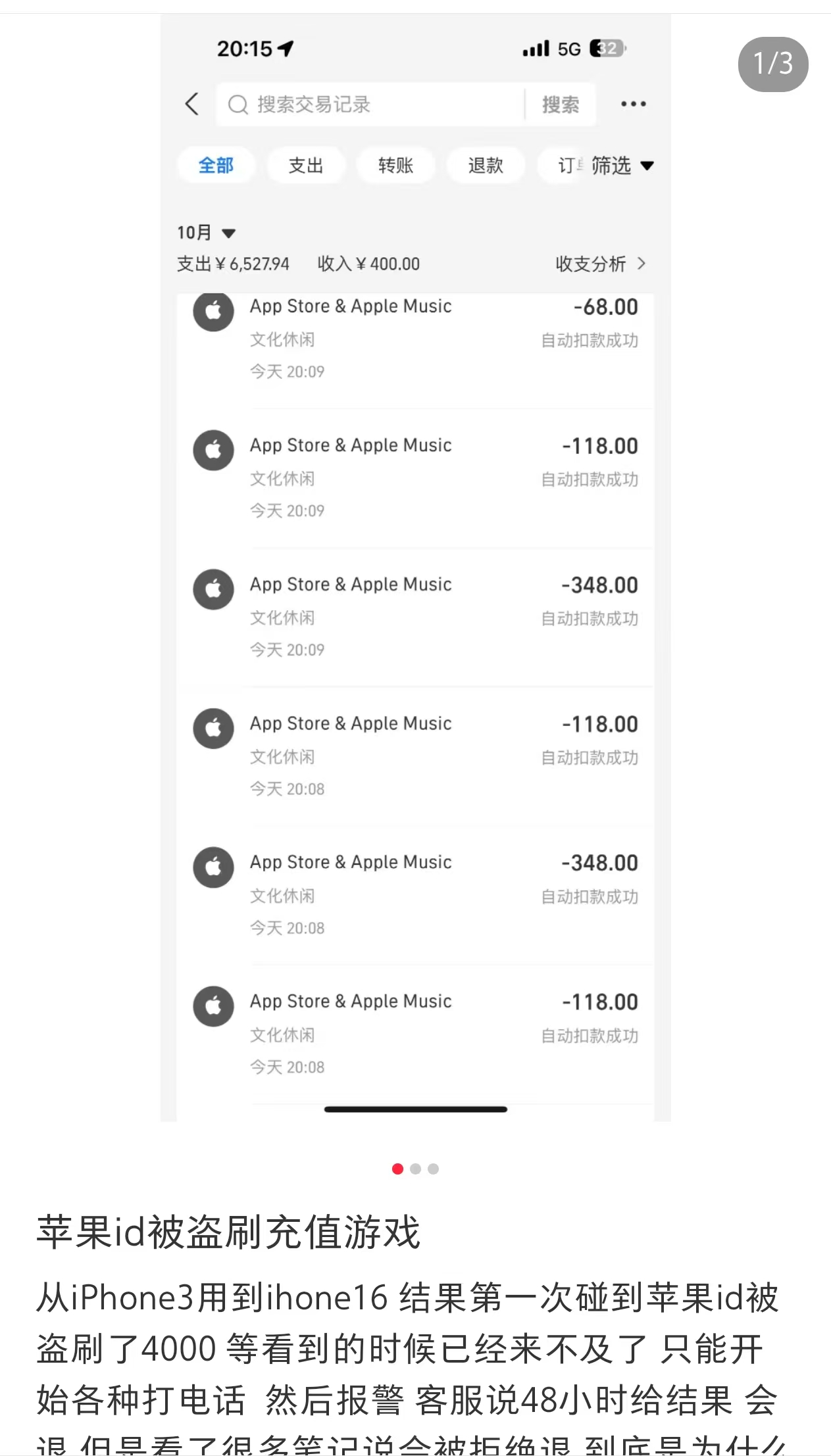 1分钟被刷走4140元 多名用户Apple ID遭盗刷