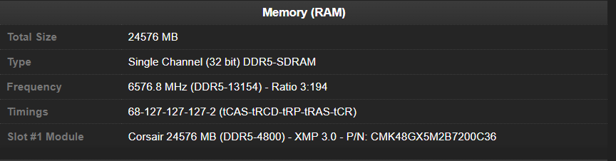 Saltycroissant使用了一根24 GB Corsair Vengeance DDR5内存条,搭配GIGABYTE Z890 AORUS Tachyon ICE主板和Intel Core Ultra 7 265K CPU,成功将内存频率推向了新的高度。