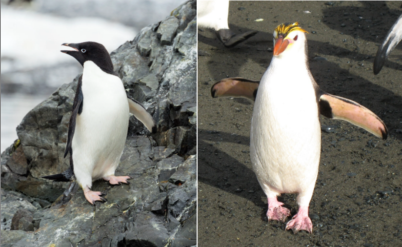 左:阿德利企鹅、右:白脸的白颊黄眉企鹅 图片来源:Wikipedia