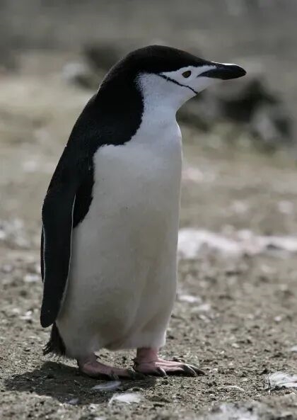 纹颊企鹅,下巴上有一条“帽带”,图片来源:Wikipedia