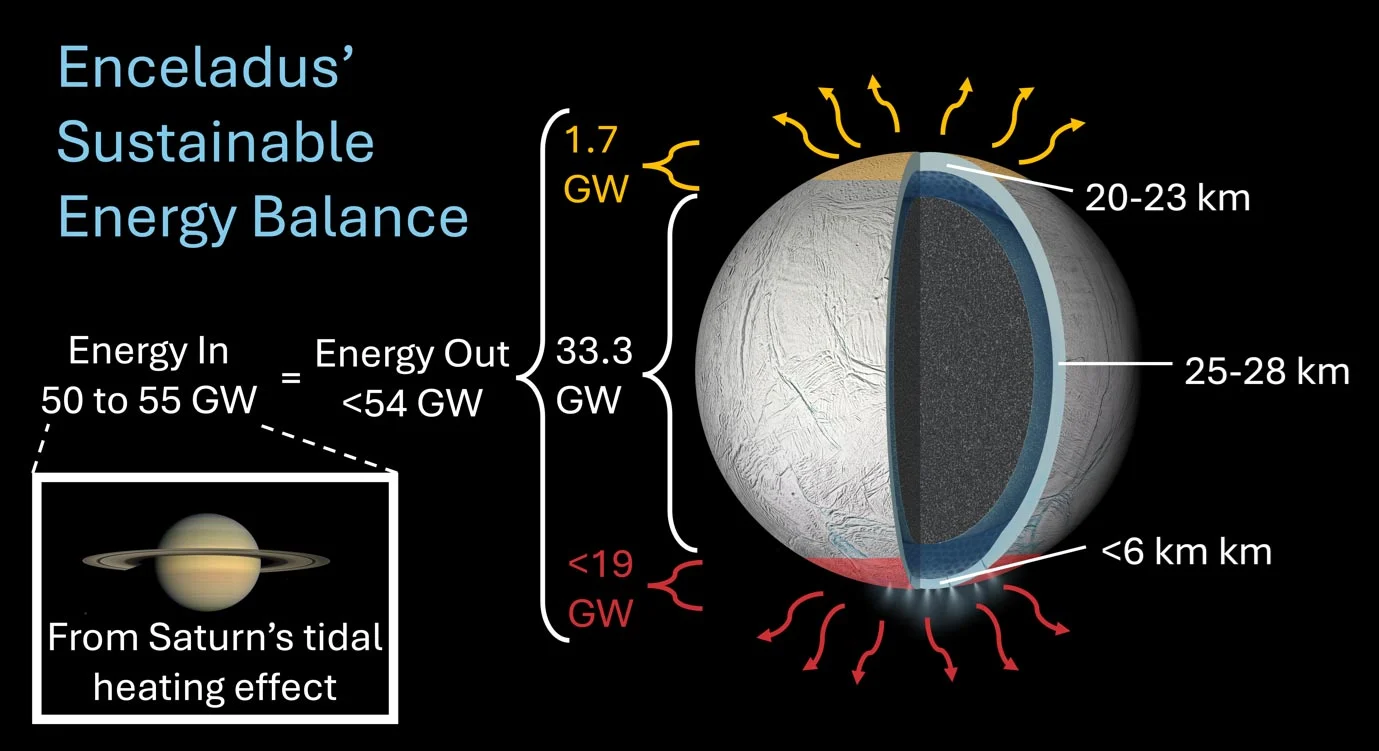 加上南极已知的高热流,土卫六的总热输出约达54吉瓦。这与潮汐加热模型的预期值一致,表明内外热量收支平衡。这种热稳定状态可能允许地下海洋在极长时间内保持液态,为生命诞生创造了稳定环境。
