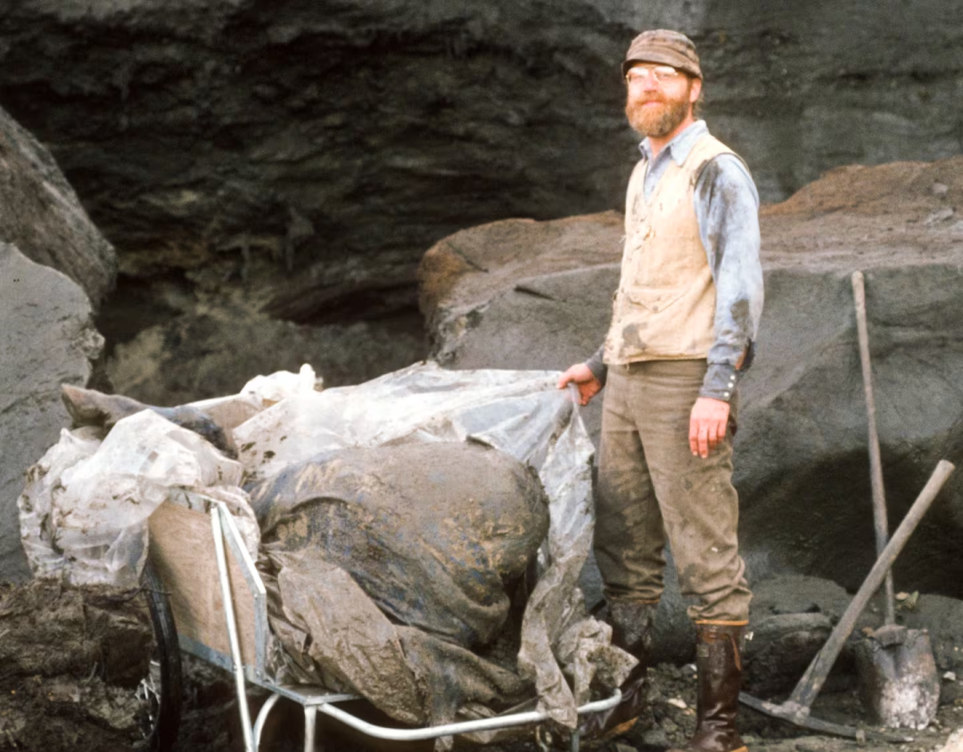 1979年7月,在阿拉斯加费尔班克斯附近作业的矿工们在冲刷土壤时,被眼前的一幕惊呆了:土壤中露出了两只动物才有的分趾脚。