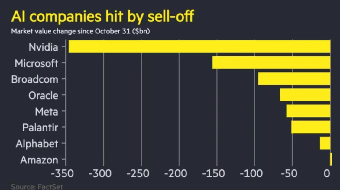 美AI科技股遭遇惨烈一周 英伟达等八巨头市值缩水8000亿美元