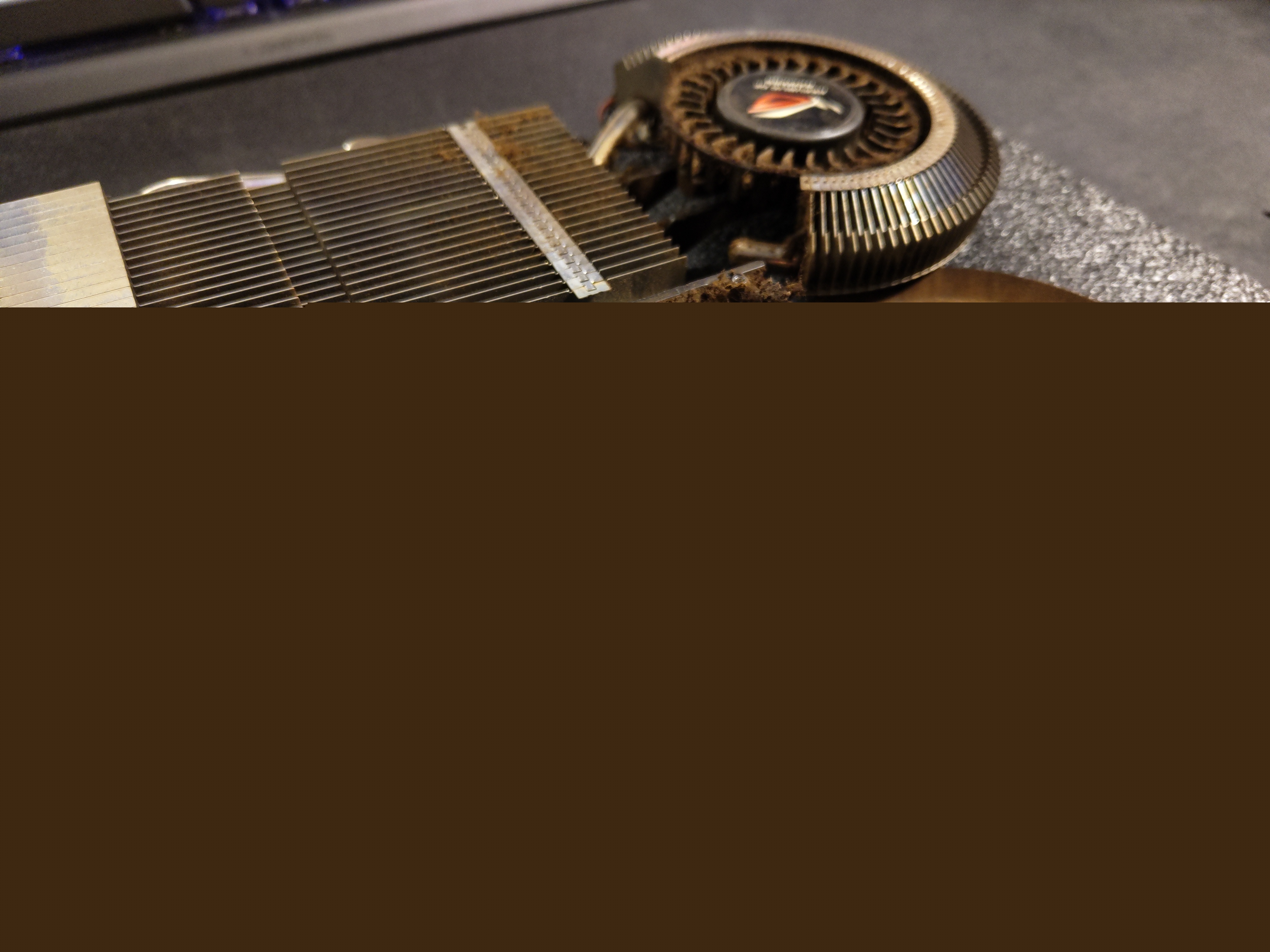 显卡外观看起来相对干净,但当维修人员拆下散热片并打开显卡后,简直触目惊心——散热片几乎所有表面都覆盖着灰尘和污垢。
