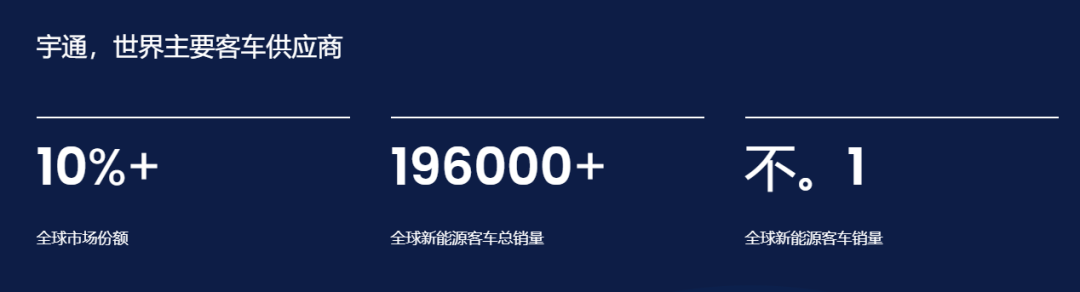 根据宇通集团官网信息,该公司已向全球100多个国家和地区出口近11万辆(传统)客车,在全球市场的占有率超过10%。该公司还宣称,其新能源客车销量(19.6万辆)在行业内位居榜首。