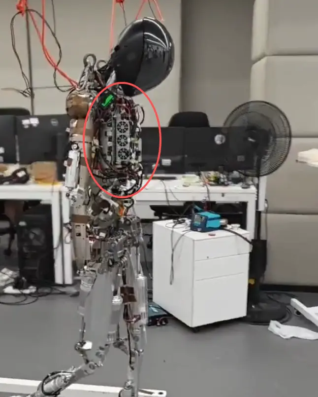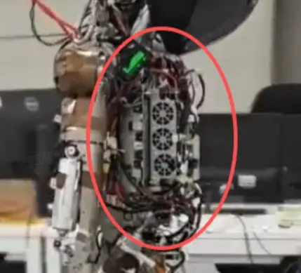 此前机器人往往将算力中心放在的背部或者脑上。但由于头部堆叠了大量传感器,且采用了仿生脊椎的关系,小鹏这次应该是将它移到了脊椎前面的胸部位置。