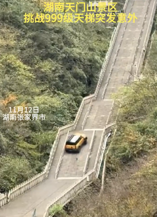 张家界市天门山景区内发生一起车辆挑战意外,一辆黄色SUV在攀爬景区天梯过程中不断倒退,撞毁多个栏杆后停下,现场有白烟冒出。事件曝光后引发网友关注,不少网友提出质疑,一方面疑问景区为何允许举办此类具有风险的活动,另一方面好奇被撞毁的护栏是否属于文物,是否如传言所说造价不菲。
