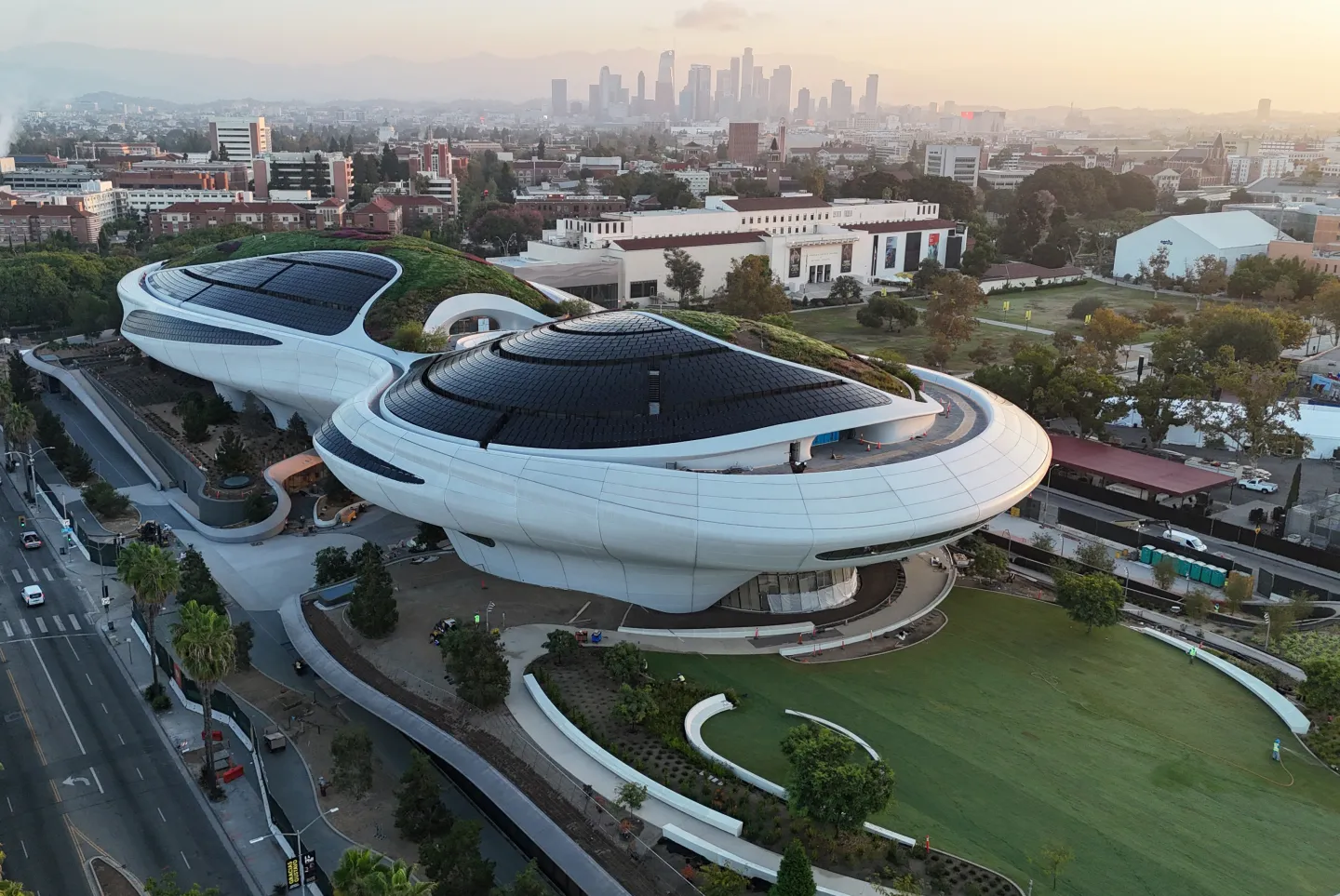 该博物馆由乔治·卢卡斯和梦工厂动画前董事长梅洛迪·霍布森联合创办,坐落于洛杉矶展览公园,成为该市又一文化新地标。