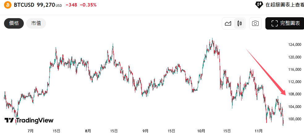 受投资者撤离风险较高、投机性较强交易的影响,比特币和更广泛的加密货币市场正步履维艰,本周恐将录得惨重亏损。比特币周五暴跌至96000美元,延续了前一天跌破100000美元关键关口的跌势。该最大加密货币本周已下跌约7%,目前的交易价格比10月6日触及的超过126000美元的历史高点低20%以上。