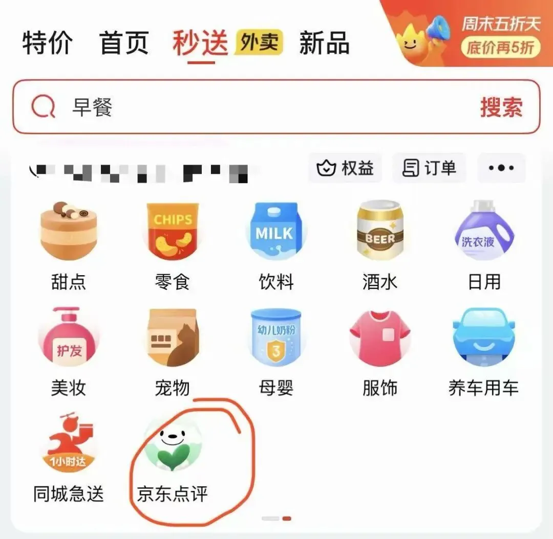 “外卖+点评”,三大平台这次算是对齐了。近日京东在秒送里上线了“京东点评”功能,目前入口藏的还有点深。京东点评新板块包含五个频道:找美食、住酒店、挑好物、去哪玩、选家政。