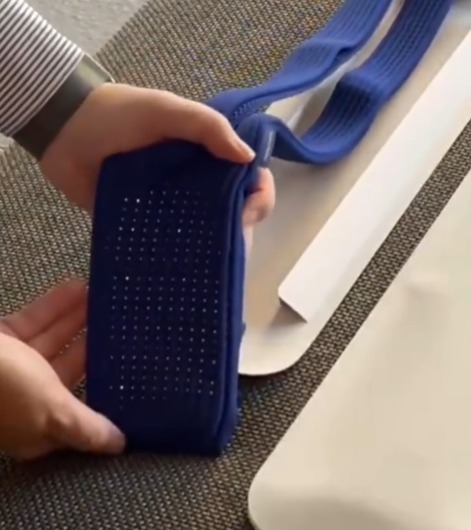 官方表示,这款配件“以美妙方式将iPhone随身穿戴”。拉伸时,织物微微透出内部物品,方便用户查看iPhone屏幕,其还可手持、系在包上,或直接佩戴在身上。