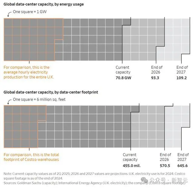上:全球数据中心容量(按能耗计算);下:全球数据中心容量(按占地面积计算)