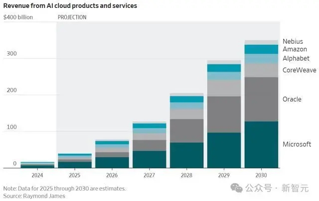 微软、Oracle、CoreWeave、Alphabet、亚马逊、Nebius的AI云产品与服务收入