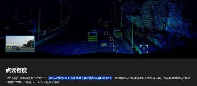 就比如 Livox 在 2021 年推出的激光雷达 HAP 其实就只有 6 组激光收发器,但它在 100ms 的积分时间里可达到与 144 线的旋转式机械激光雷达相似的点云水平,那么它就是一个 “ 等效 144 线 ” 的激光雷达。