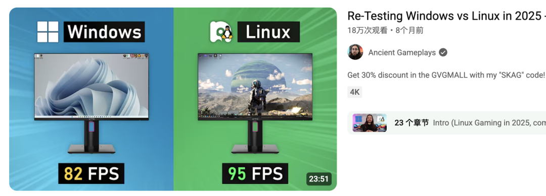 不信的话,大家可以看看网上各种 Linux 系统和 Windows 系统的游戏帧率对比,应该能找到不少惊喜。