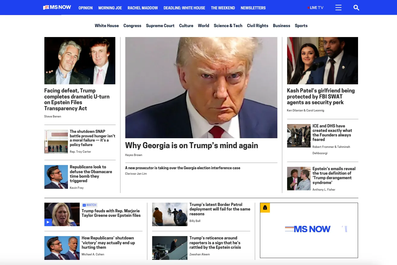 美国知名新闻媒体 MSNBC 网站现已正式更名为 MS.NOW,启用了全新域名 ms.now 及全新品牌标志。这一举措是其今年早些时候宣布品牌更名计划后的又一关键步骤。新网站布局与此前的 MSNBC 网站基本保持一致,但整体视觉风格焕然一新,标志性的孔雀标识已被代表新品牌形象的“MS NOW”旗帜 Logo 取代。