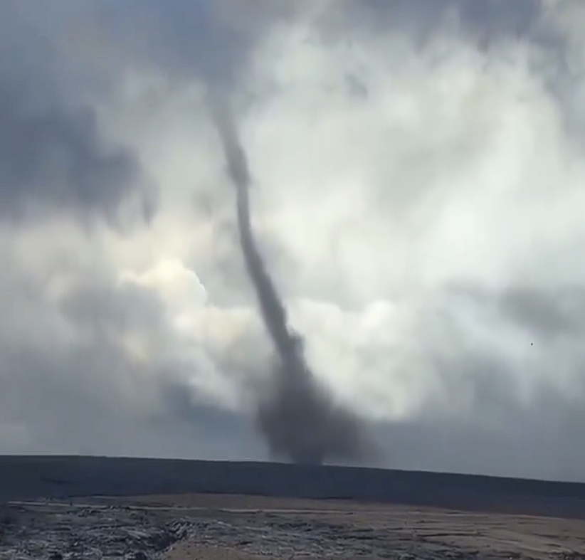 在喷发期间更是出现罕见 "火山龙卷",可以看到炽热空气与冷空气形成的旋转涡流,裹挟火山灰形成橙红色 "火鞭"。