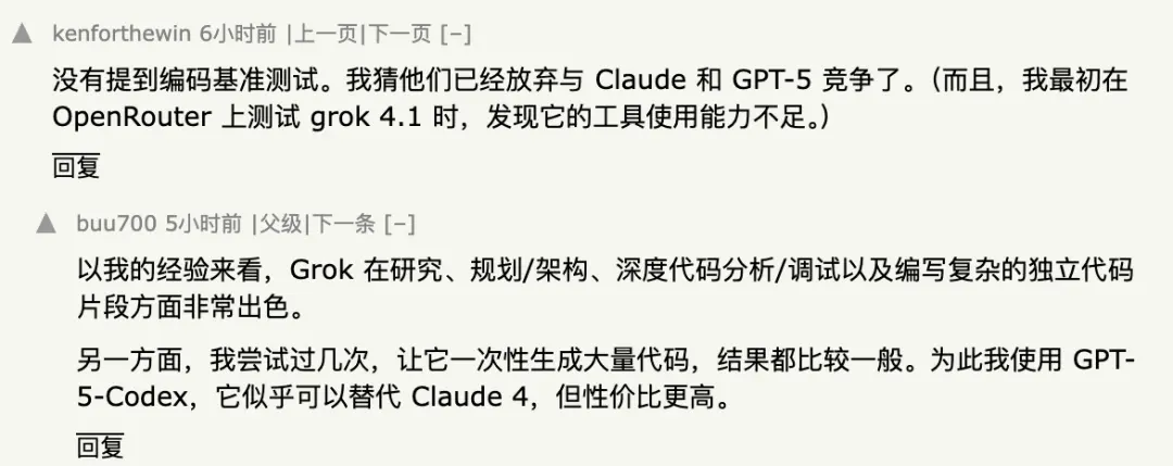 当然,也有一些质疑声,比如有人指出在生成代码这块儿,Grok 还不太有竞争力。