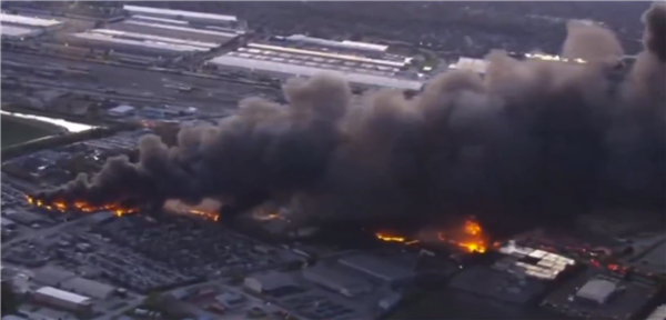机上携带约14万升(28万磅)燃油,爆炸后引发 "飞行油罐" 式燃烧,坠机区域形成1.6公里长的连续燃烧带,火势蔓延至周边仓库和道路,数公里外清晰可见。