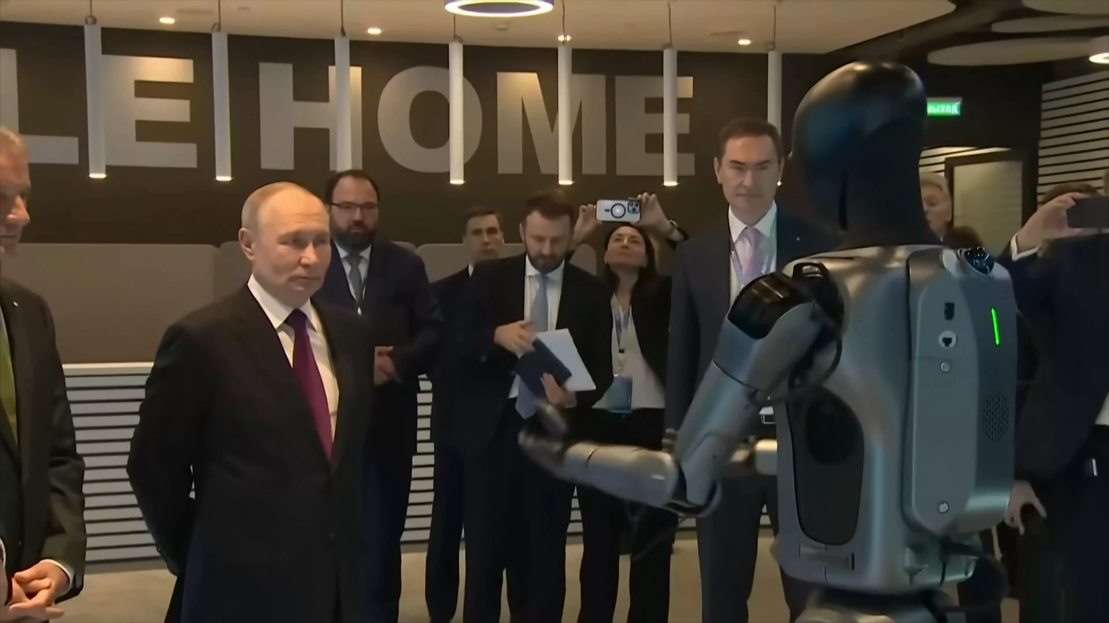 俄罗斯总统普京对该国最新的人形AI机器人展现出颇为尴尬的反应