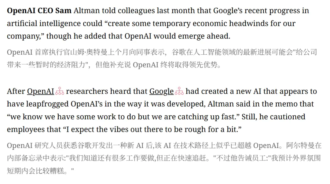 虽然这波Google有望重夺王座,但是在此前面对OpenAI时,Google一度掉以轻心。