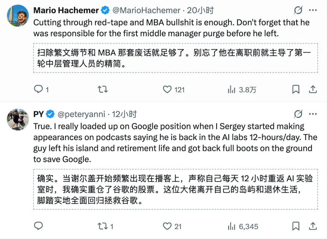 Google这波成功,除了在战略和文化上,被“创始人模式”带飞了一波。