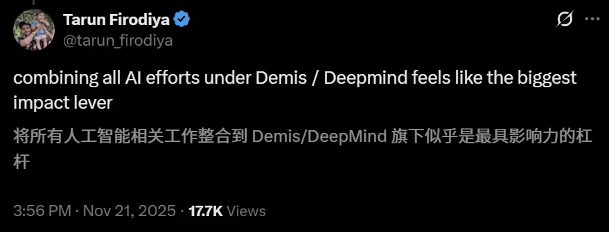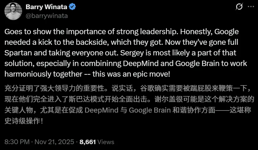 甚至有网友认为,如果不是创始人打通了Google部门之间的壁垒,Gemini 3或者Nano Banana Pro并不会以“全面出击”的方式上线。
