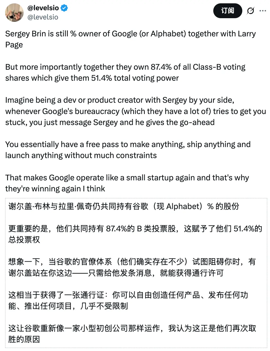 但布林的回归,让Google再次成为一家AI时代的“创业公司”。