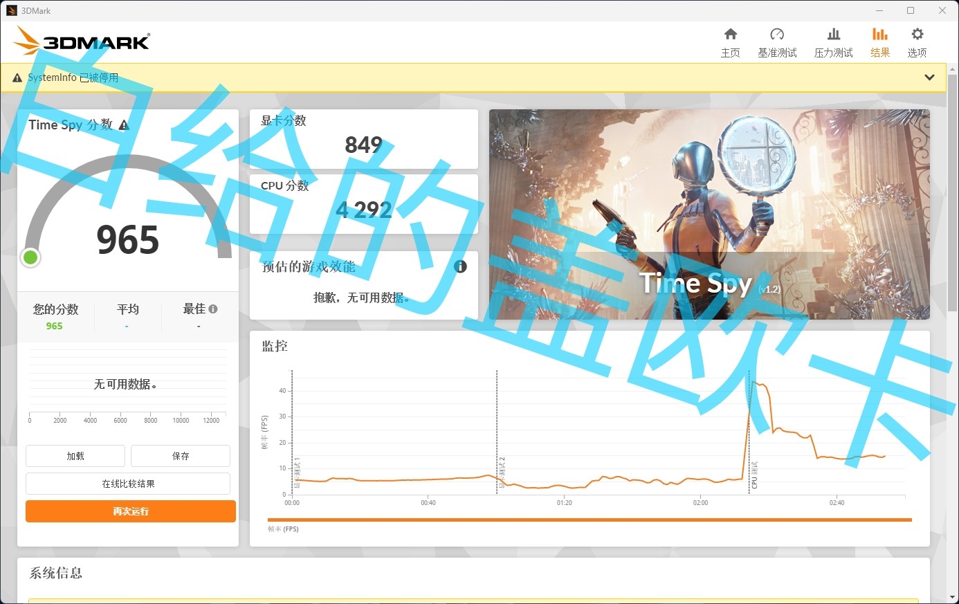 不过因为是样品,频率很低,CPU睿频最高3GHz,GPU睿频最高1.5GHz,3DMark Time Spy跑分只有965。