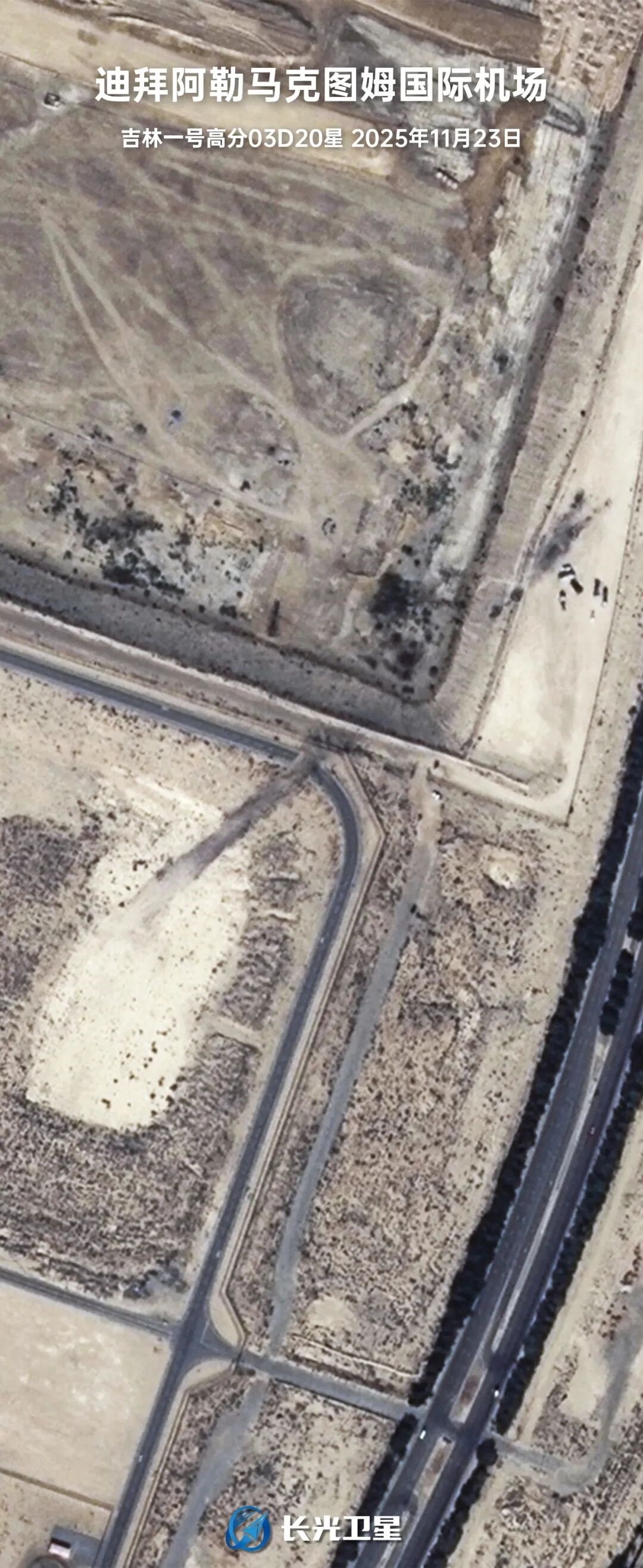 远在太空的“吉林一号”卫星星座,在日常掠过中东上空的轨道任务中,无意间记录下了事故发生后现场的影像,可以清晰地看到坠机现场的大量残骸。