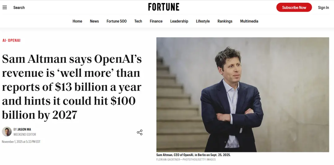 2024全年,根据财报数据,OpenAI实际推测的收入仅为24.7亿美元,而同期媒体(如CNBC、The Information)报道或预测的收入高达37–40亿美元。
