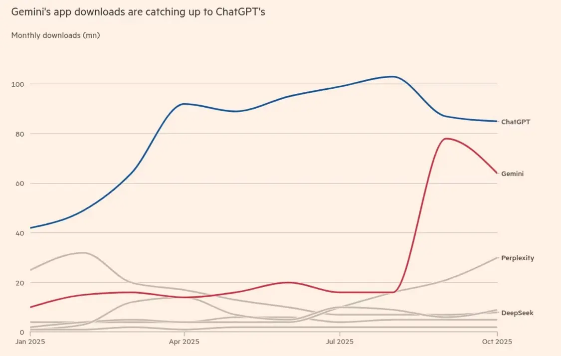 但是,Google的逆袭从今年初就已开始。该公司先是在5月的I/O开发者大会上信心十足地推出了一系列系列更新,然后又在今夏推出了火爆出圈的Nano Banana AI图片编辑工具。这推动Gemini移动端月活跃用户从5月的大约4亿增至6.5亿。