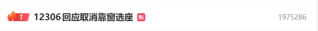今日,话题#12306回应取消靠窗选座#登上微博热搜第一,引发网友热议。据了解,有网友发帖称,在12306购票选座时发现,A、F座两侧的“窗”字没了,而是变为“两堵墙”。
