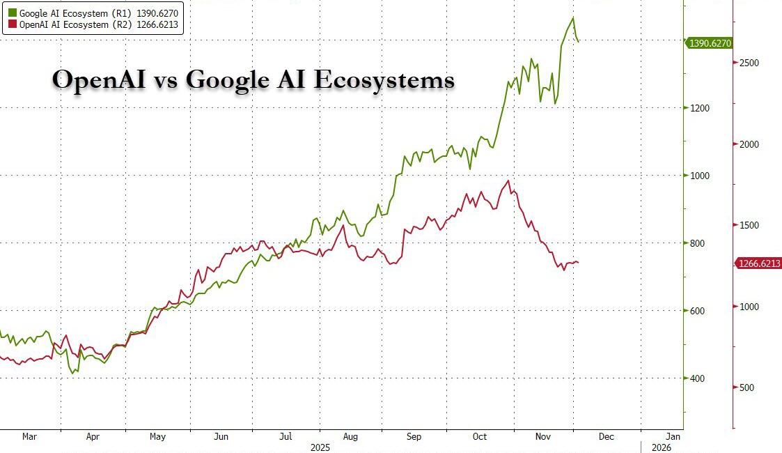OpenAI此次启动红色警报的背景是面临来自多家竞争对手的压力。Google上月发布的新版Gemini AI模型在行业基准测试中超越了OpenAI,推动Google母公司Alphabet的股价飙升。上周Alphabet股价一周涨超14%,自两周前发布Gemini 3以来,截至上周五不到两周内也累涨超10%。