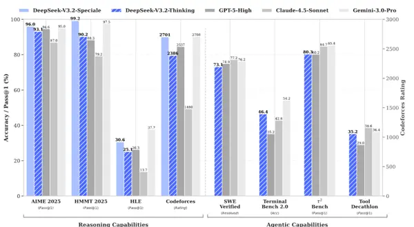 通过这修改模型架构,重视后训练,强化 Agent 能力的三板斧,DeepSeek 才终于让自己的新模型,有了能和世界顶尖开源模型再次一战的能力。