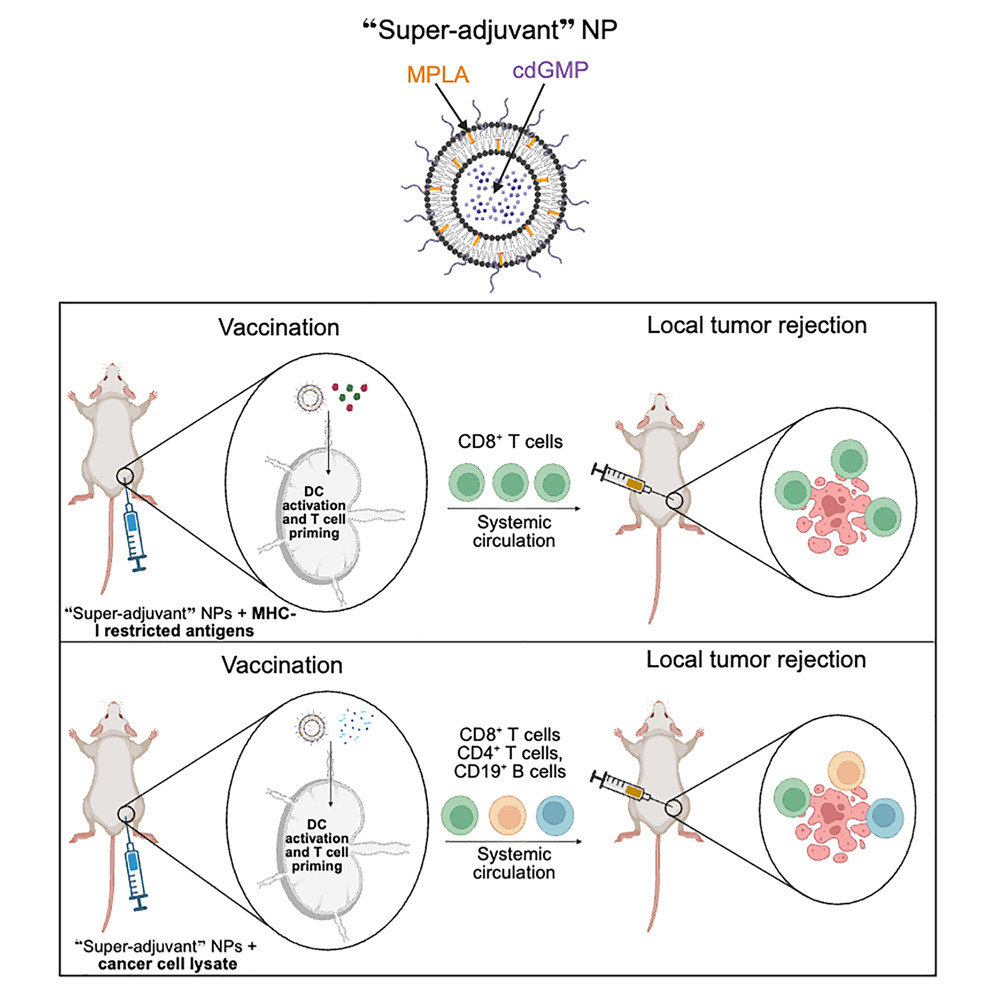 这款候选疫苗的核心是一种脂质纳米颗粒构成的“超佐剂”平台,可同时封装并稳定递送两种不同的免疫刺激分子,再与特定癌症抗原或来自肿瘤本身的“肿瘤裂解物”组合使用。研究团队介绍,这一设计模拟了病原体向免疫系统发出多重“危险信号”的方式,从而更有效地激活先天免疫细胞,推动它们高效呈递抗原并启动针对肿瘤的T细胞杀伤反应,同时建立持久的免疫记忆。