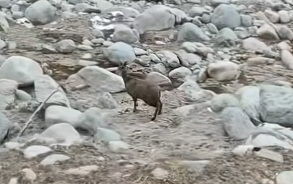甘肃牧民在河谷拍到国一保护动物马麝 世界最濒危的物种之一