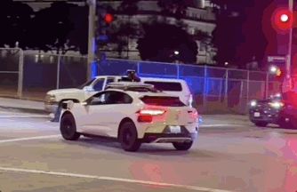 Waymo无人车,你给我干哪儿来了?!美国特色一刻,警匪对峙之际,Waymo Robotaxi迎着一排警灯闯进抓捕现场。据Waymo官方回应,“停留时间不超过15秒”。这可能是乘客这辈子经历最漫长的15秒了,无人车和嫌疑人的最近距离,还不到一个车道宽。这一幕被路人拍了下来,发布到社交平台,很快就火了。