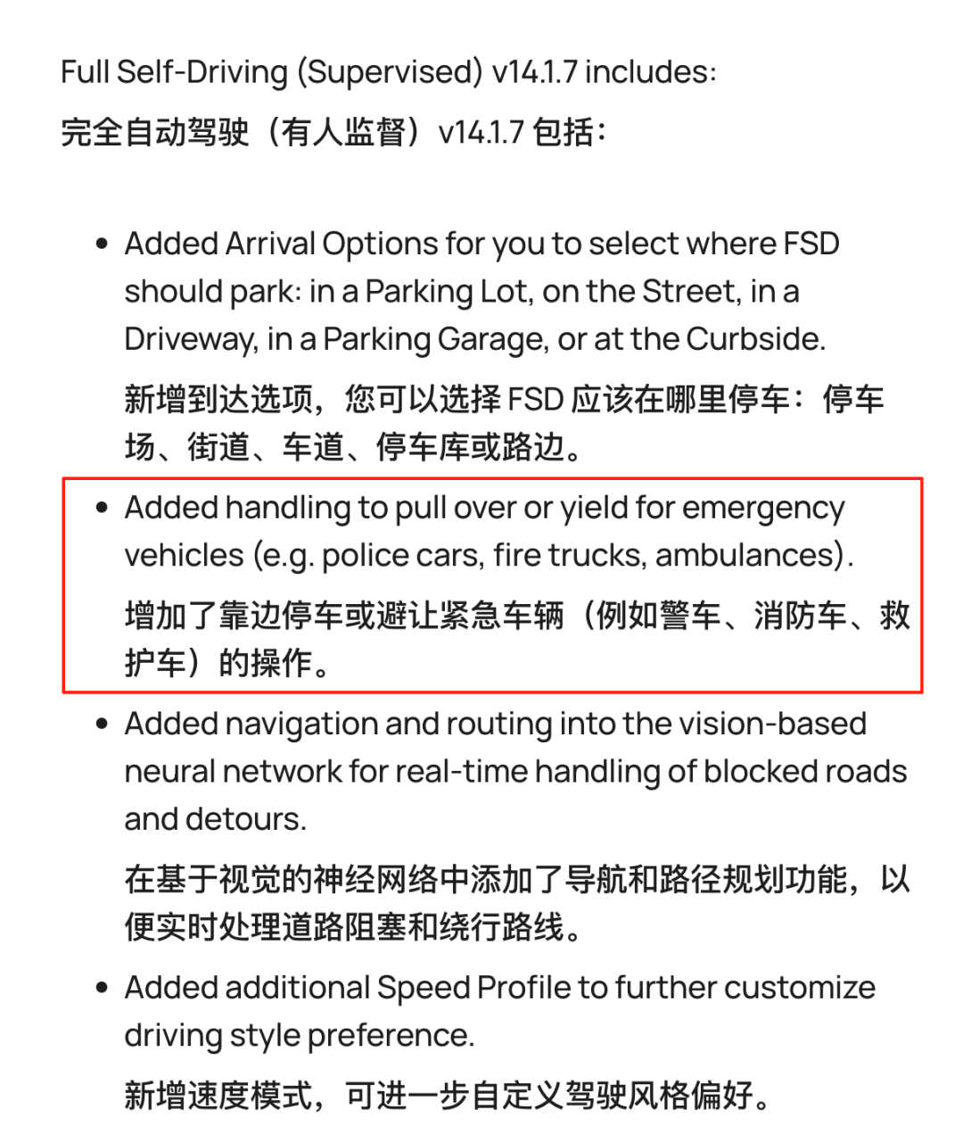 有很多特斯拉车主觉得,如果是自己开车途经现场,FSD看到特殊车辆肯定知道绕着走。查看FSD近期的OTA记录会发现,特斯拉确实把避让车辆当作更新重点。